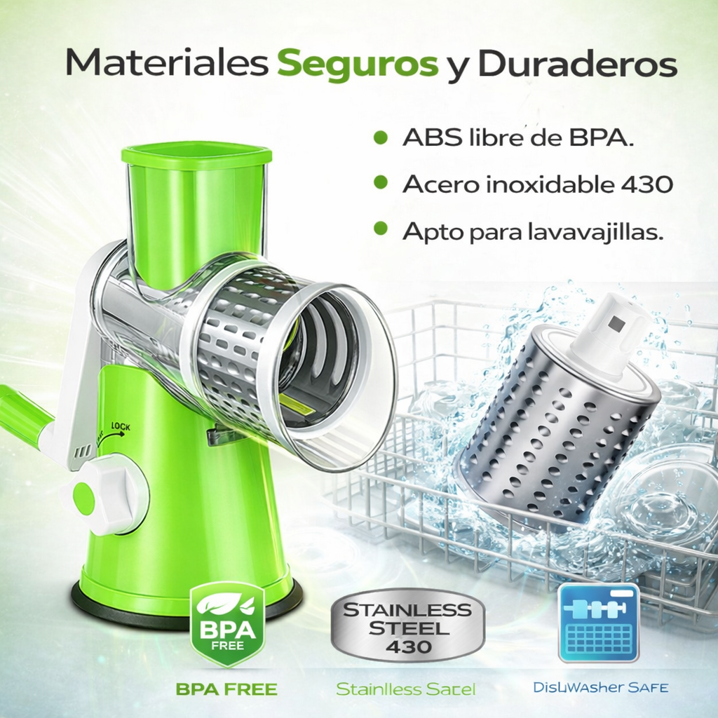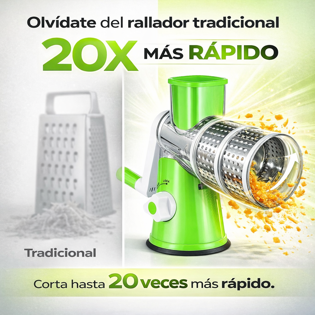“Antes tardaba un montón rallando a mano. Con este sistema giratorio es rapidísimo y no tengo que hacer fuerza. La base lo deja bien firme y se limpia en un momento. Lo uso todo el tiempo.”